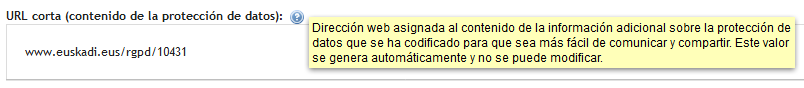 - URL corta del contenido de la Protección de Datos: se ha añadido una URL corta asociada a la Información Detallada (2º nivel) sobre la Protección de Datos, que permite identificar de una forma fácil dicha información.