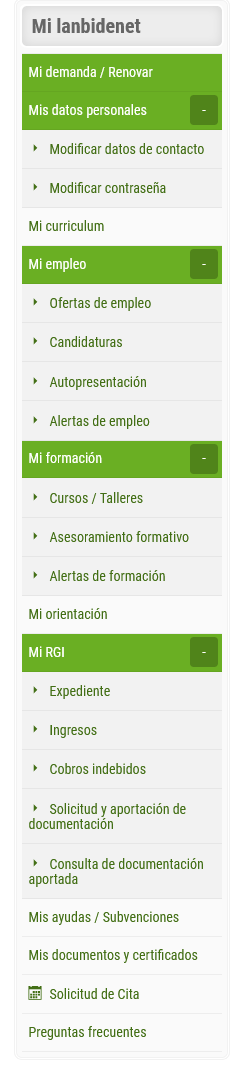 Mi demanda / Renovar. Consulta los datos de tu demanda, modifica tu situación administrativa y renuévala; te ofrecemos también la posibilidad de publicitar tu perfil profesional; recibirás avisos y comunicaciones (mensajes personalizados enviados por los diferentes servicios de Lanbide: inserción, Formación, RGI,...; podrás mostrar tu disponibilidad para ofertas de empleo, cursos o talleres de orientación.