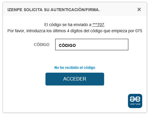 Después, solicitará el código de un solo uso enviado a su movil o correo electrónico, según lo tenga configurado.
