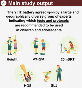 Este estudio ha logrado un consenso internacional (objetivo inicial, ≥80 %) sobre la batería Youth Fitness International Test (YFIT) para el seguimiento y vigilancia de la condición física en niños, niñas y adolescentes.