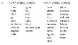 mendekoetan erabiltzen baitira beti: dezala, gaitezen, etab.3. Adizki bat osatzeko, zutabe bakoitzetik ?goitik beherako lerro
