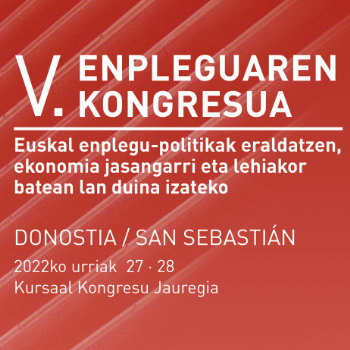 Eusko Jaurlaritzaren Lan eta Enplegu Sailak sustatuta, Enpleguaren VIII. Kongresua izango da urriaren 29an, Donostiako Kursaal Kongresu Jauregian.