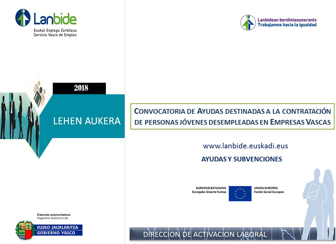 Ayudas destinadas a la contratación de personas jóvenes desempleadas en empresas vascas. Programa Lehen Aukera 2018