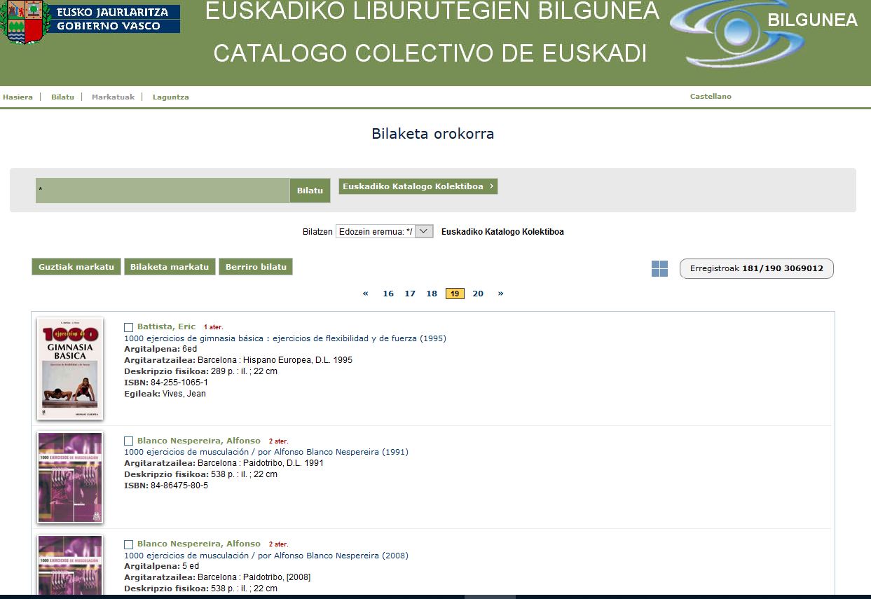 Katalogo honek Euskadiko liburutegietako informazioa ezagutzeko eta atzitzeko aukera ematen du, eta 3.069.012 erregistro bibliografiko baino gehiago ditu.