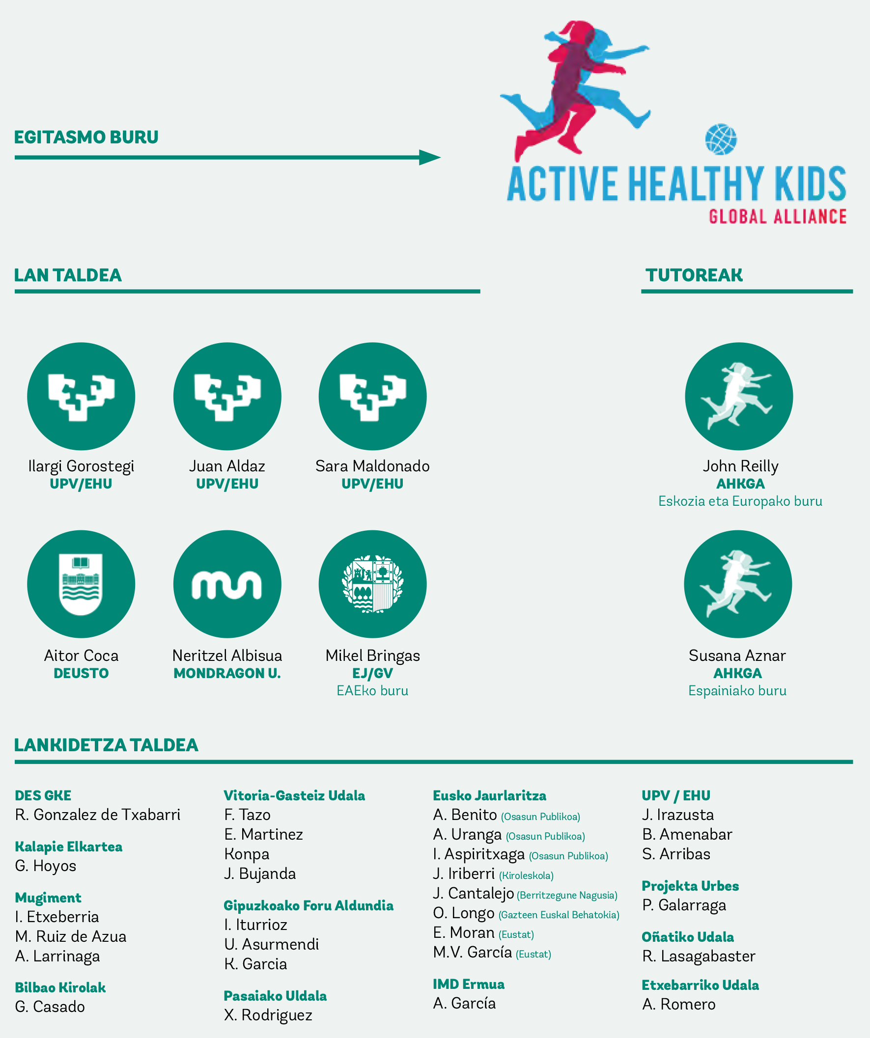 Global Matrix ekimena Active Healthy Kids Global Alliance erakundeak zuzentzen du. Mundu osoan ume eta gazteen jarduera fisikoaren sustapenean elkar-lanean ari diren ikertzaileek, osasunaren profesionalek eta beste eragilek osatutako irabazi asmorik gabeko erakundea da.
