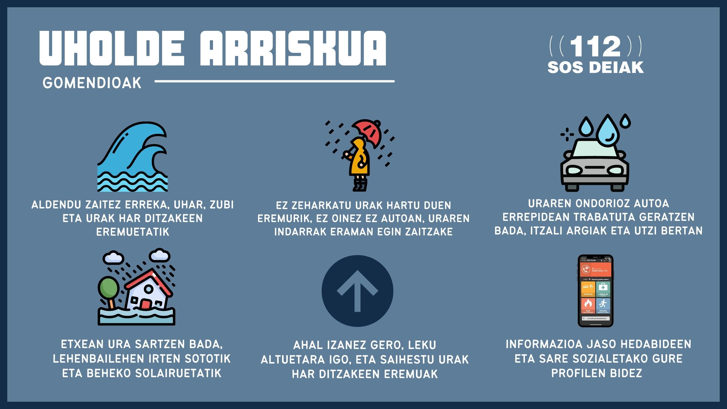 Horrek esan nahi du uholdeak hasi direla zenbait lekutan eta arreta ziurtatuta dagoela eta larrialdietako baliabideak eta bitartekoak mobilizatu direla.