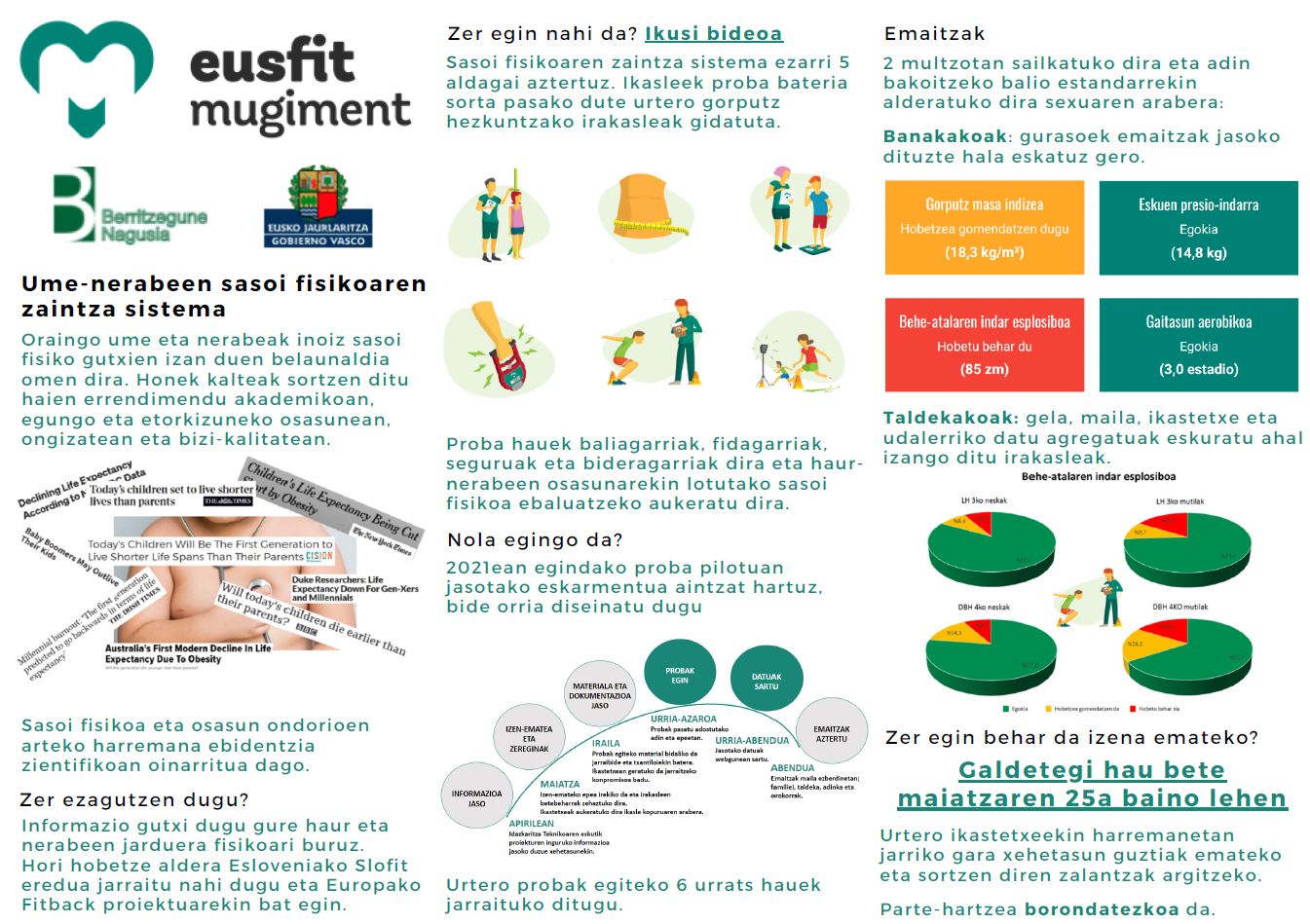 Eusfit Mugiment ekimenaren helburua da Euskadiko haur eta nerabeen sasoi fisikoa nolakoa den ezagutzea. Gure oraingo ume eta nerabeak inoiz sasoi fisiko gutxien izan duen belaunaldia omen dira, eta honek, kalteak sor ditzake haien errendimendu akademikoan, egungo eta etorkizuneko osasunean, ongizatean eta bizi kalitatean. Beraz, orain inoiz baino gehiago, ume eta nerabeen sasoi fisikoa neurtzeko beharra dago.