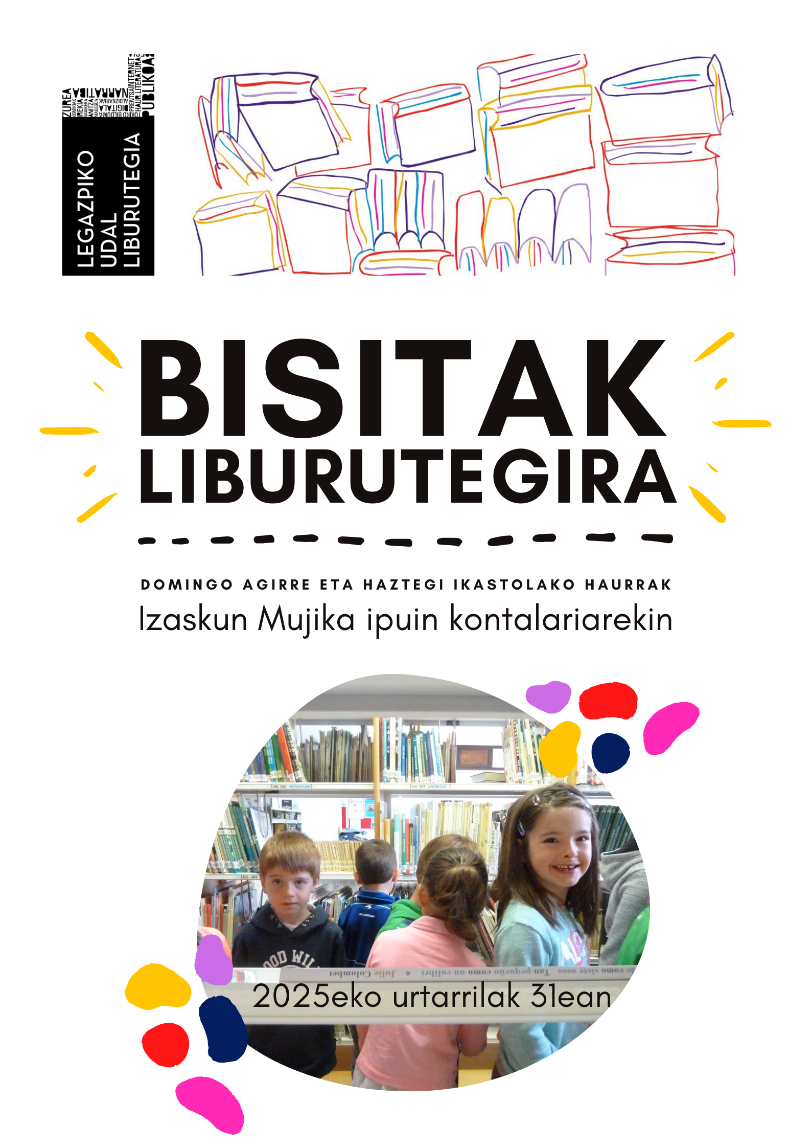 Ostirala urtarrilak 31ean liburutegiak Legazpiko 5 urteko haurrei harrera egingo die. Bisita gidatuak antolatu ditugu liburutegia ezagutzen laguntzeko, irakurketaren plazerraz berri emateko eta beste hainbat kontuetaz aritzeko ere.