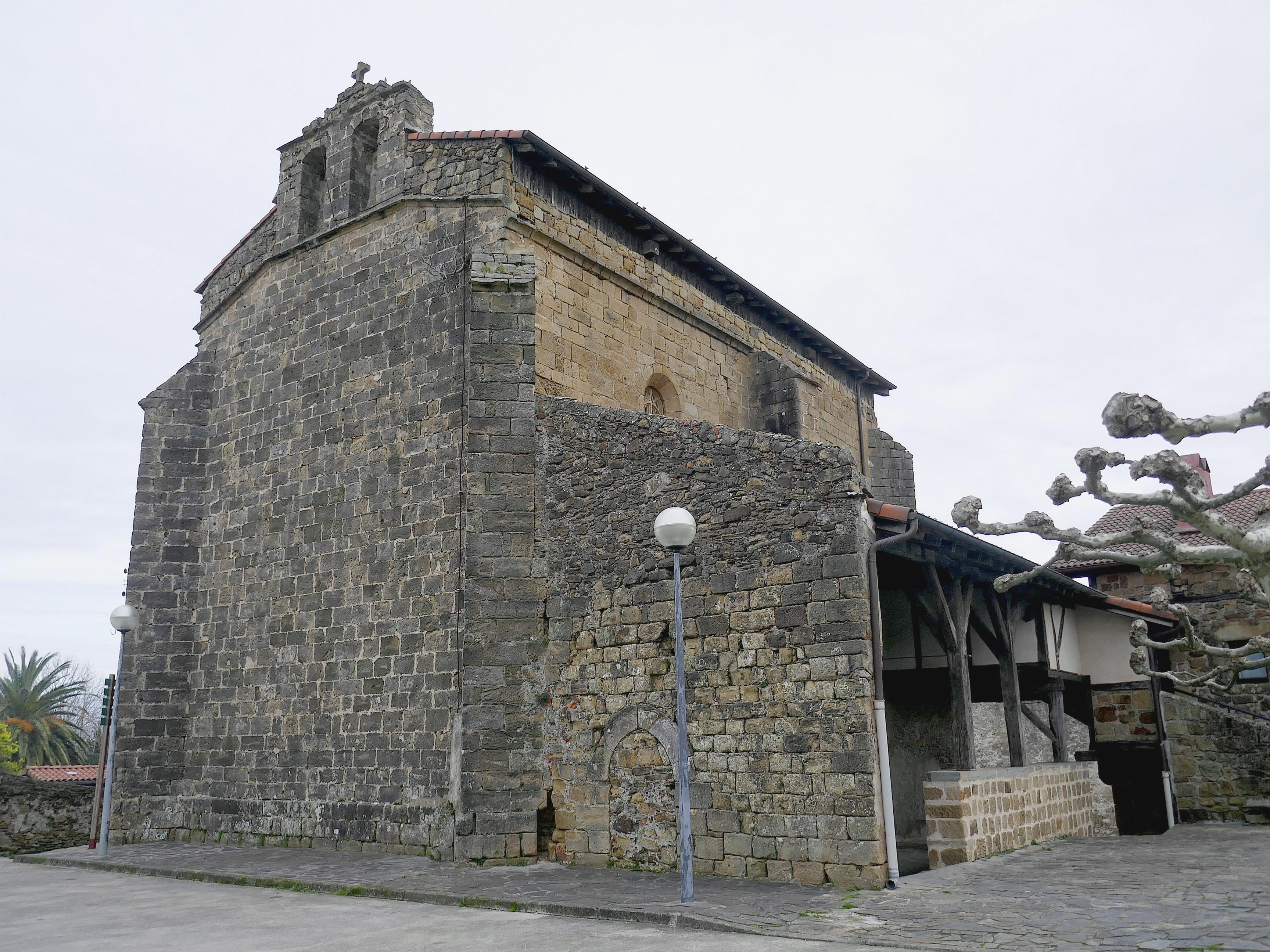 Con todo, el elemento arquitectónico más importante del templo se localiza en su ábside cuadrada, donde permanece en pie el tramo construido en el siglo XIII, en el que se abren dos estrechos y sencillos ventanales que constituyen la manifestación más antigua de este estilo en Gipuzkoa. Se trata de un gótico absolutamente desprovisto decoración superflua a los elementos puramente arquitectónicos como son las columnas, capiteles y arquivoltas que enmarcan los vanos.