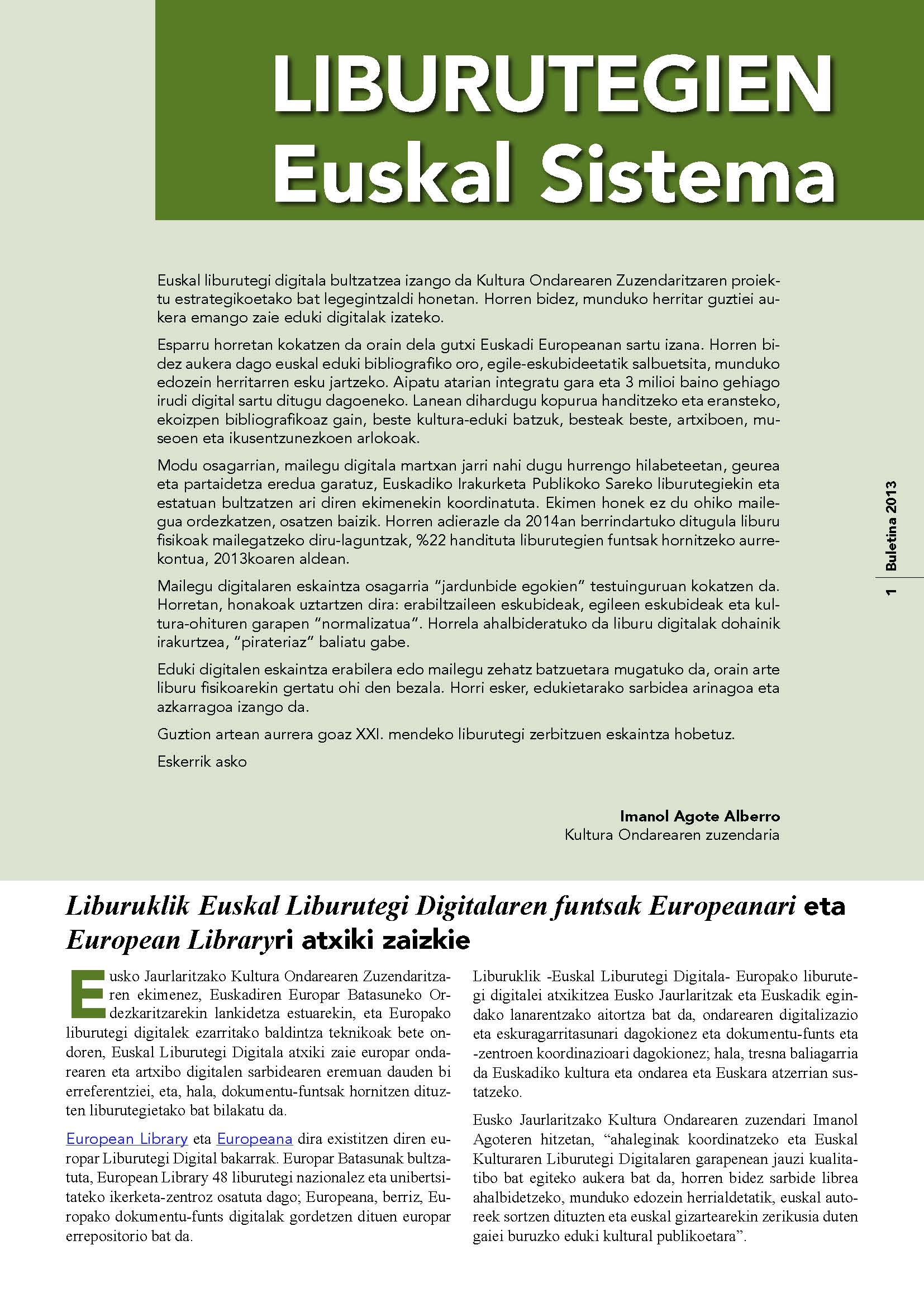 - - Liburuklik Euskal Liburutegi Digitalaren funtsak Europeanari eta European Libraryri atxiki zaizkie