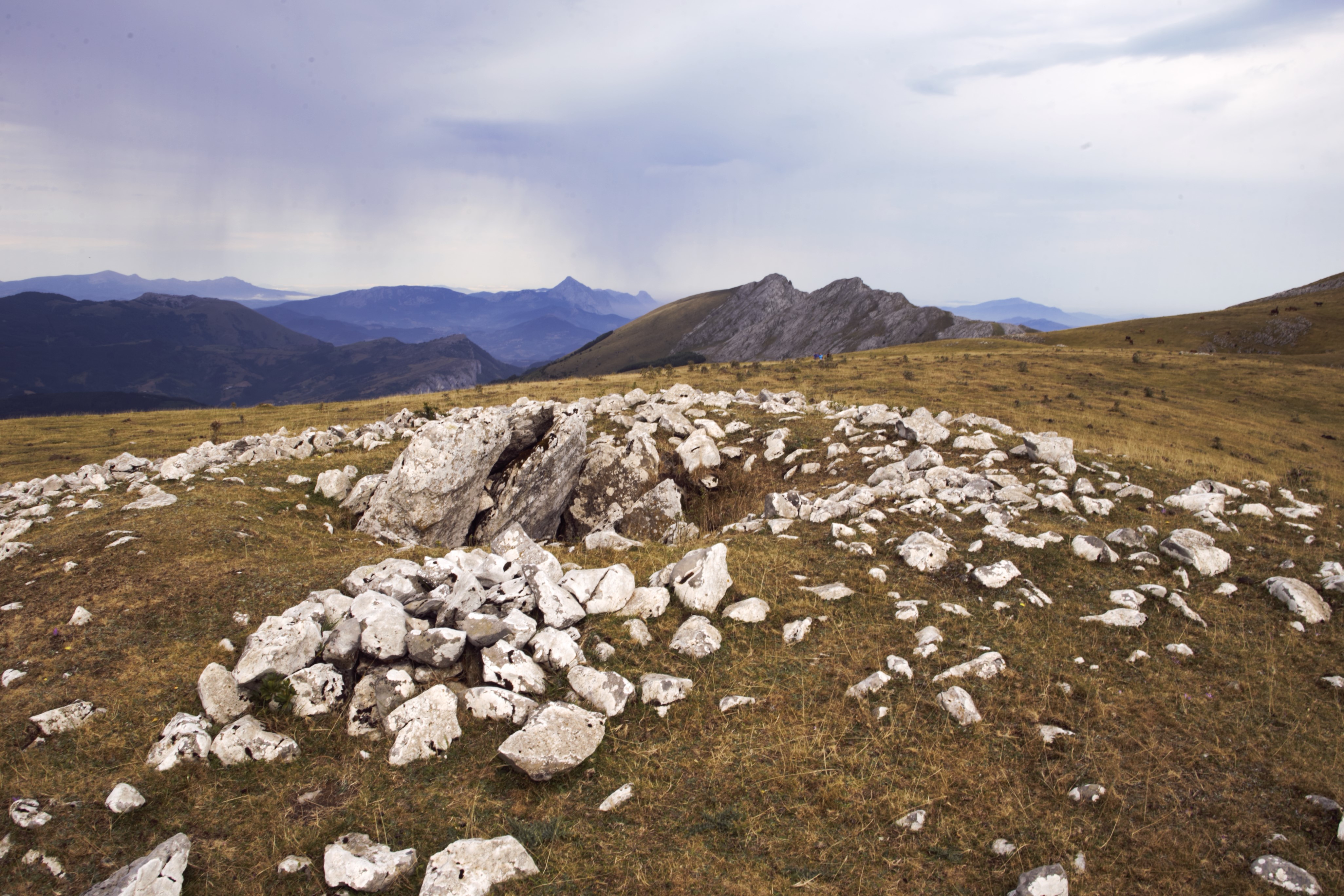 Taldeko panteoi hori duela 5.000 urte eraiki zuten ehiztari-biltzaile taldeek. Abeltzaintzan ere aritzen ziren, eta urtaroen arabera mendi-inguru bikain horretako baliabide naturalak aprobetxatzen zituzten. Hildako batzuk eremu horretan lurperatu zituzten, hil ondoko bidaiarako objektu zenbaitekin batera, bai erabilera arruntekoak bai eskaintzak.
