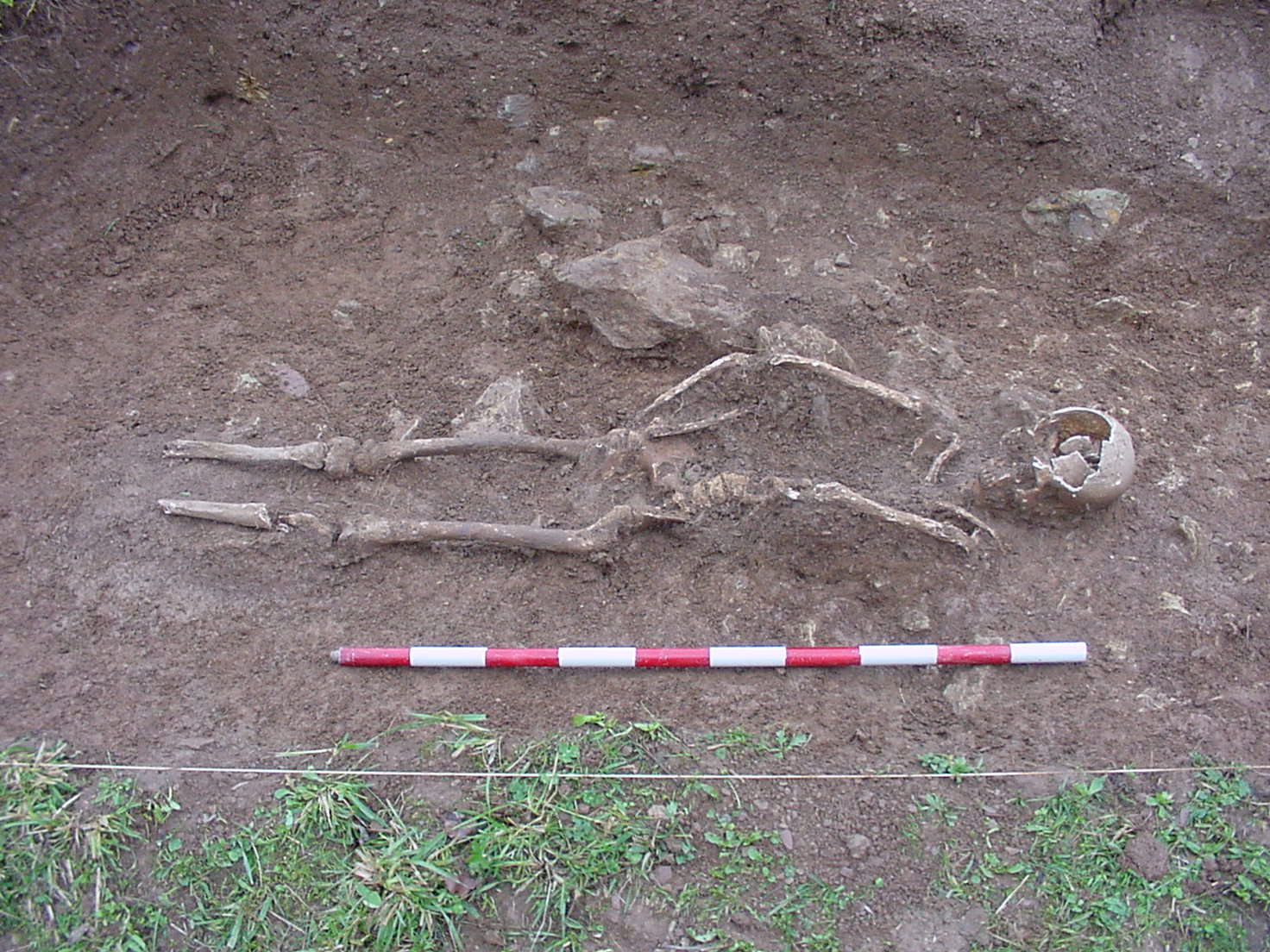 Asu baserritik hurbil dagoen hobitik 2003ko azaroaren 20tik 24ra bitartean atera ziren hondarrak. Informazioa eman zutenek adierazitako lekuan egin zen esku-hartzea. Hezurren hondarrak 40 zentimetroko sakoneran zeuden, ahoz gorako etzanera, besoak gorpuaren gainetik luzatuta, eskuineko eskua albo bereko izter inguruaren gainean, eta ezkerreko eskua erdiguneko abdominalen inguruan. Gizonezko heldu gazte baten gorpua zela ondorioztatu zen, 40 urte ingurukoa. Eskeletoaren kontserbazio-maila oso eskasa zen, eta zati batzuk falta ziren. Auzitegi-azterketaren arabera, pertsona horrek pistola baten tiroa jaso zuen aurpegiaren eskuineko aldean. Hain zuzen ere, pistola baten jaurtigai deformatua berreskuratu zen, 9 mm-koa, heriotzarekin lotuta.