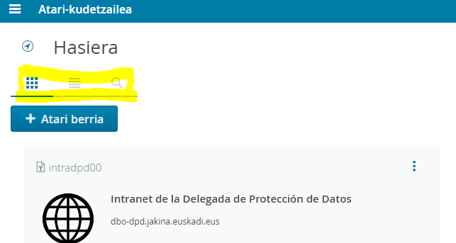 Atarien kudeatzailean sartzen garenean, baimenarekin esleituta dauzkagun atarien zerrenda agertuko zaigu. Atarien zerrenda hori bistara daiteke honela: