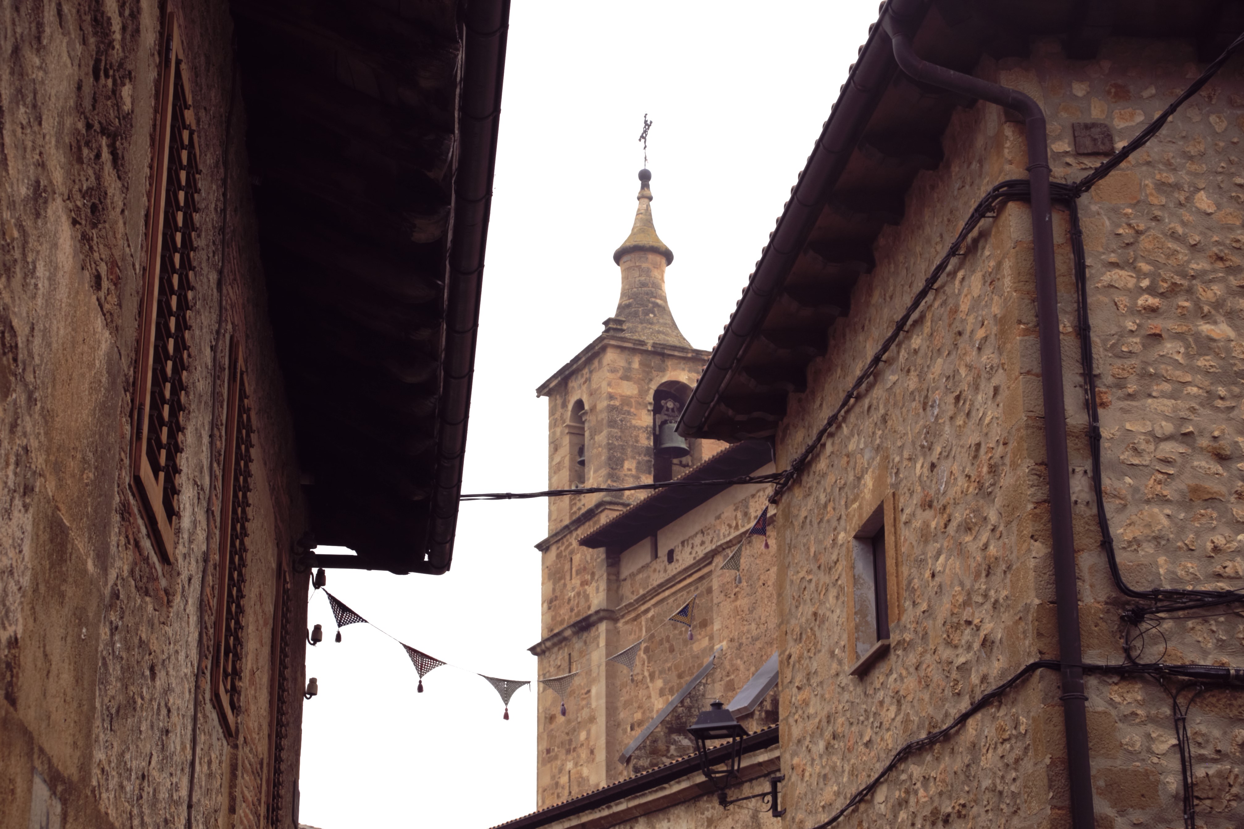 Hiribilduaren erdian Plaza Nagusia irekitzen da, non XVI. mendeko Andre Mariaren Jaiotzaren parrokia-tenplua dagoen, gotiko estilokoa. Oinplano angeluzuzena eta abside hexagonala ditu, eta barrualdean ganga izartuz estalita dago, gangen nerbioek floroiak osatzen dituztela. XIII. mendeko portada nabarmentzen da, gotikorako trantsizioan dagoen erromaniko estiloa duena: arku zorrotza du, txandaka molduraz eta landare-motiboz apaindutako zortzi arkiboltakoa, eta arkuei eusten dieten kapitelak dotore ornatuta daude. Portada, XVII eta XVIII. mendeen artean gehitu zen arkupe batez babestuta dago. Erretaula nagusia, barroko estilokoa da, XVII. mendekoa, José Pérez de Viñaspre eta Francisco Jiménezek egina.