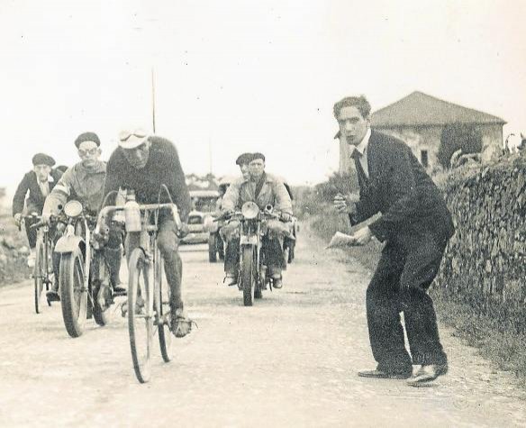 Cepeda smiles in the portraits with his combed slicked hair, broad forehead, expressive nose, prominent jaw, exuding confidence. He worked as a justice of the peace. He earned his living by settling small municipal disputes, but only really enjoyed it when he escaped from the office on his bicycle. First, to visit his girlfriend and return: sixty kilometres that served as training. Then to enter races and win many of them, the Getxo Circuit, the Easter Grand Prix, the bronze medal in the Spanish championship, until he took on the great adventure: the 1930 Tour. He was the first Basque to finish the French race in 27th position. And he never managed to finish it again: in 1931, he retired ill almost at the end; in 1933 he arrived out of control in the first stage, like Jean-Baptiste Intzegarai from Labortano; then he retired from cycling, but in the office he could not resist the itching and joined the powerful Orbea team again. In 1935, he took part in the first ever Vuelta a España and came 17th. It was not enough for him to be included in the Spanish national team for the Tour, but he had no doubts: he signed up as an independent cyclist, with his father, a businessman who preferred to see him in his post as a judge, with the comfort of the office and the guaranteed good salary, and not spending misery in that wild race. Cepeda left his chair, got into the saddle and threw himself into that passion that devoured him. And so did it.