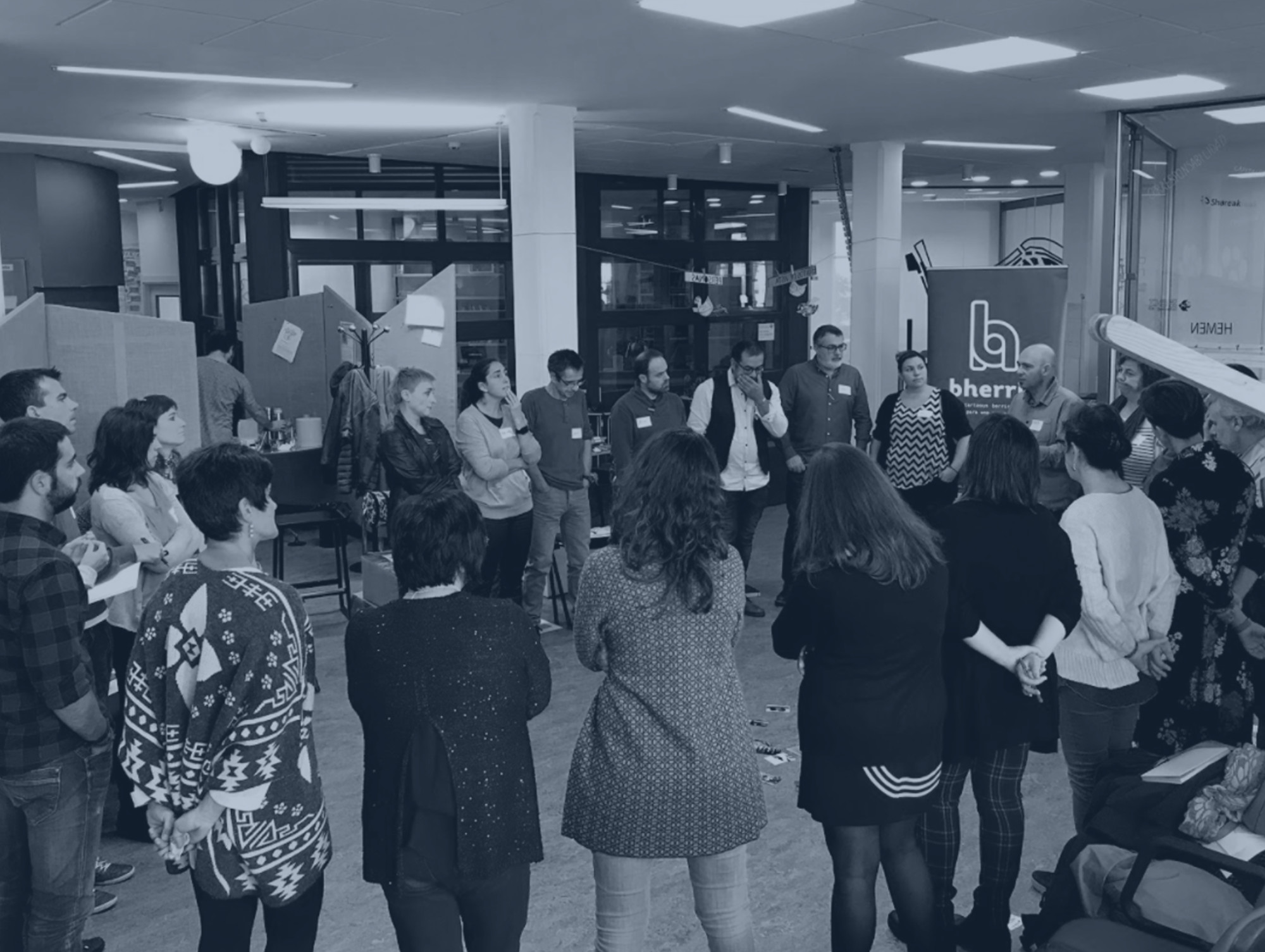 Urriaren 3an, Bherria ekimenaren lehenengo saio presentziala egin genuen. Hirikilabs (Donostia) aukeratu genuen topagunetzat, Araba, Bizkaia eta Gipuzkoako hainbat udaletan eta berdintasuna, berrikuntza, boluntariotza, euskara, gazteria, gizarte-ekintza, hezkuntza, kirola, komunikazioa, osasuna eta parte-hartzea bezalako esparruetan erantzukizun teknikoa eta politikoa duten 30 pertsonaren arteko lehenengo bilera egiteko.
