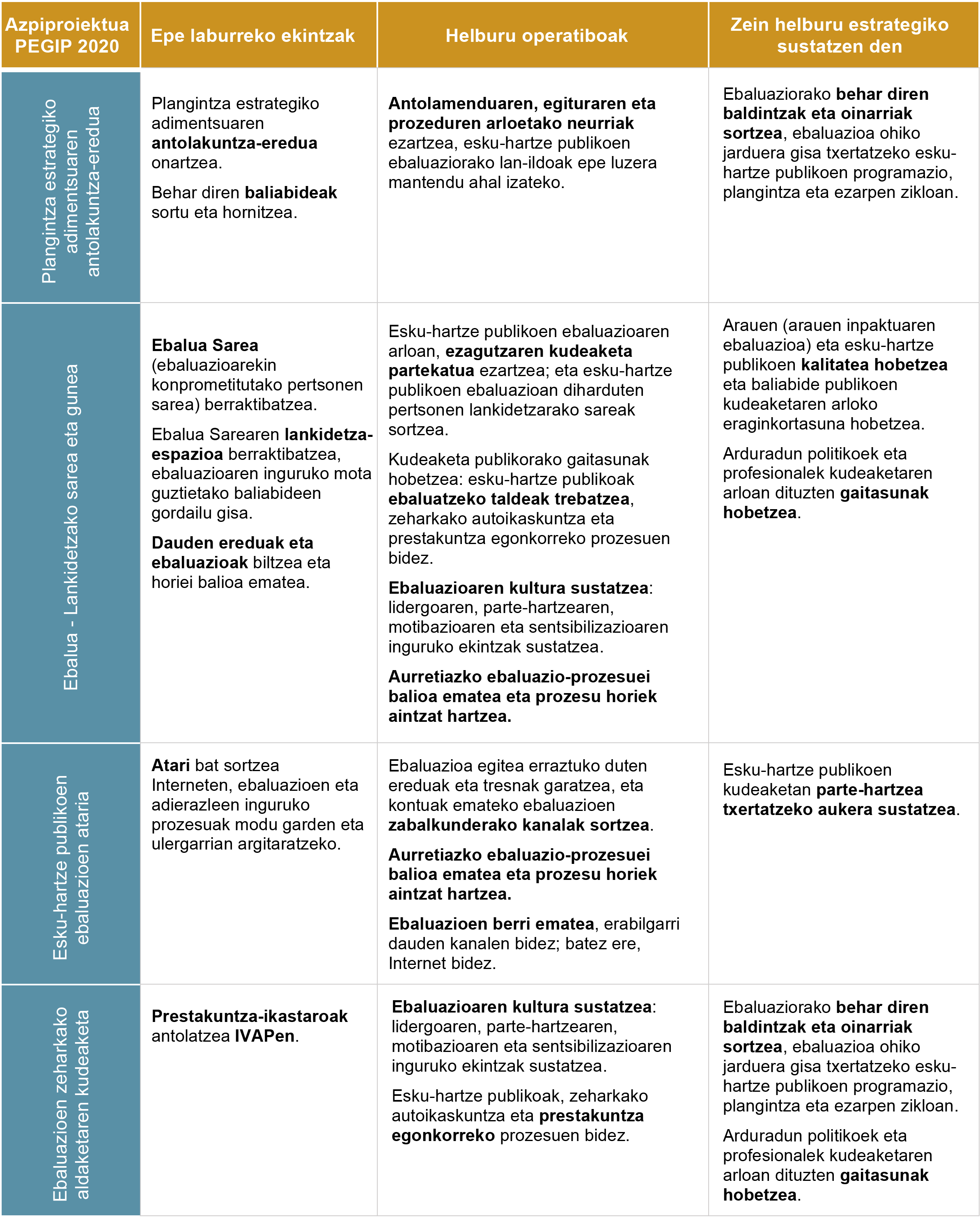 Politika publikoak ebaluatzeko estrategia eta planteamendua, PEGIP 2020 planean