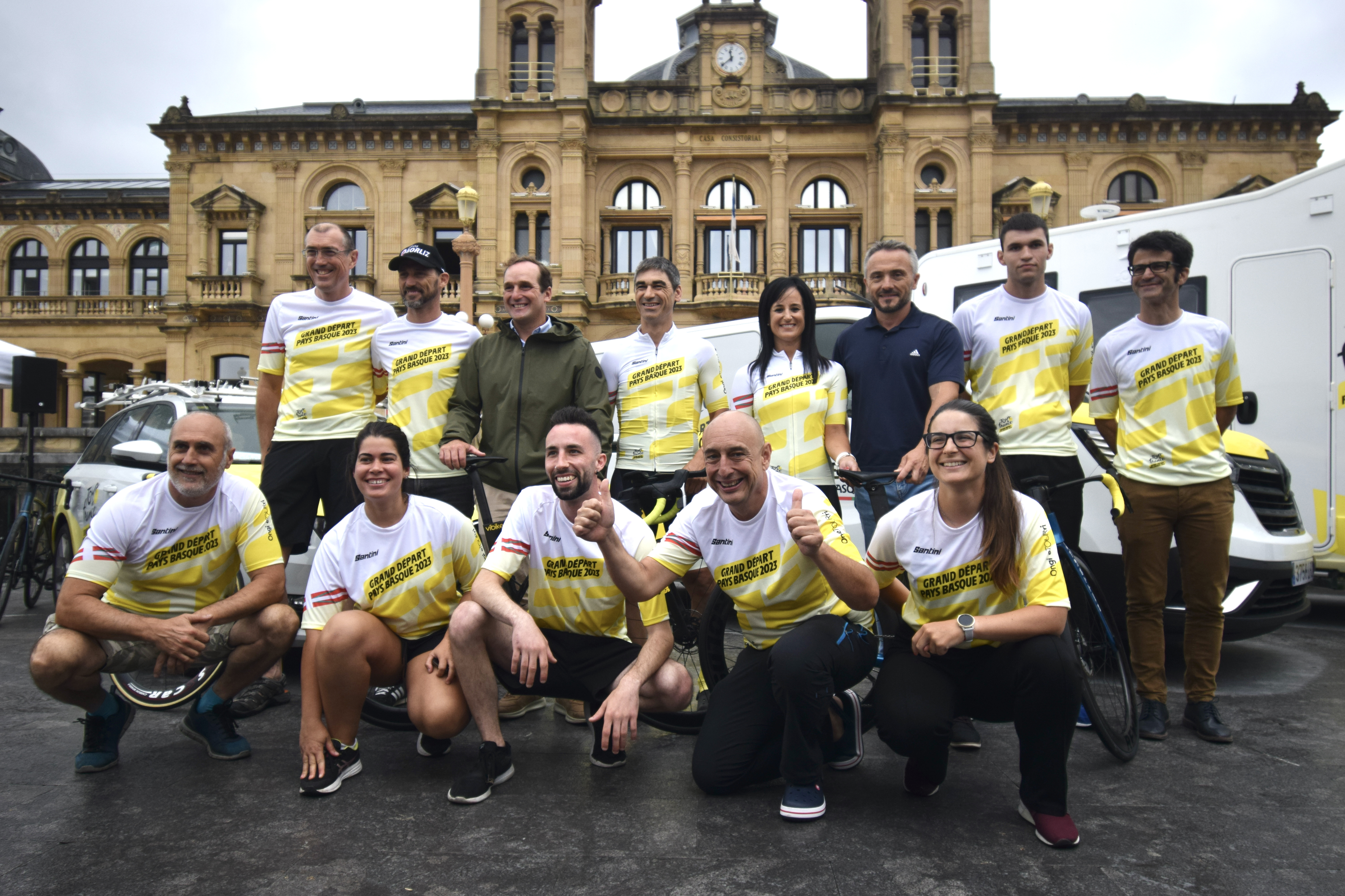 Donostiako Udaleko eskalinatan aurkeztu da gaur goizean Tourreko garaikurra Parisetik Euskadira bizikletaz ekartzeko erronka. Ekimena Grand Départ Pays Basque 2023ko antolaketan parte hartzen duten zazpi erakundeek eta Euskadiko Txirrindularitza Federazioak antolatua da.