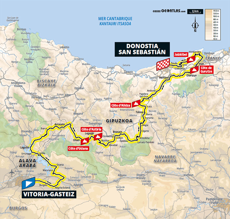 - Azken jardunaldia Euskadin. Durangaldetik itxasorantz abiatu eta kostalde osoan zehar abiatuko gara Baionaraino. Lekeitio, Ondarroa, Donostia, Hondarribia eta Donibane Lohizune Baionaraino. Agian 2023ko Tourreko lehen esprint potoloaz gozatzeko eguna izango da.Gure kostaldeko errepideak etengabe egiten du gora eta behera eta bihurgune asko ditu. Beraz, oso garrantzitsua izango da tropelean ondo kokatuta joatea, beti aurrean, lasterketan zehar "látigo" asko egongo baitira eta horietan energia asko alferrik galtzen baita. Helmugan ikusiko dugu gizon azkarren artean zeintzuk heldu diren sasoitsuen.