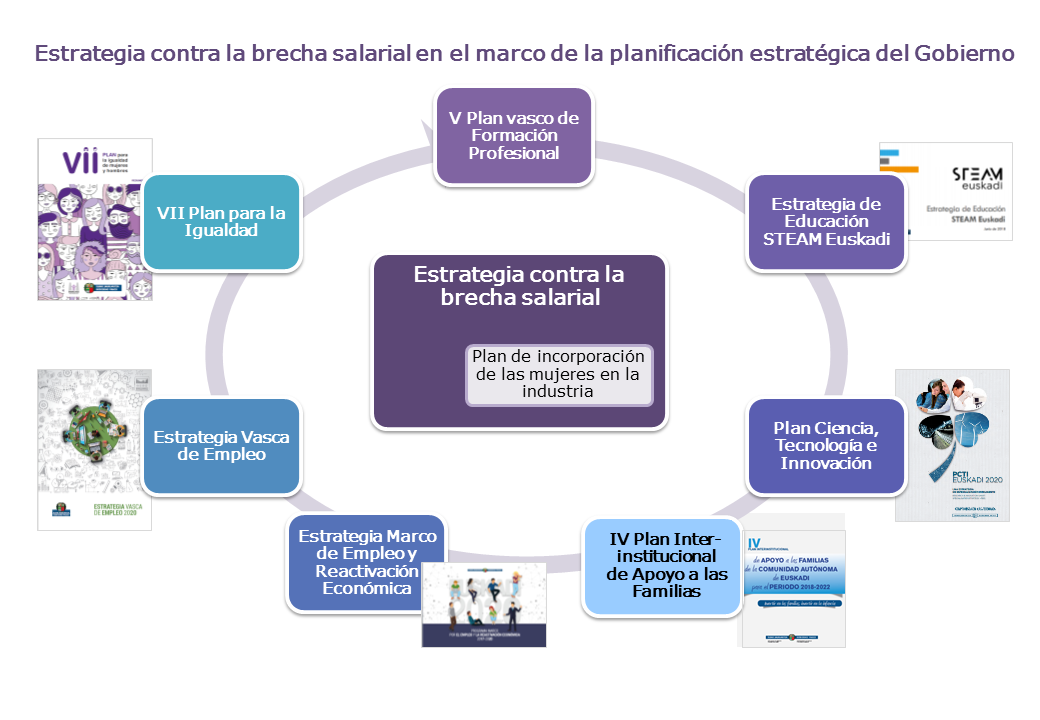 La Estrategia y Plan Operativo de Acción para reducir la Brecha Salarial en Euskadi (PDF, 2 MB) es el plan aprobado por el Consejo de Gobierno de 27 de noviembre de 2018 y cuya meta es que Euskadi se sitúe, para el año 2030, entre los países europeos con menor brecha salarial.