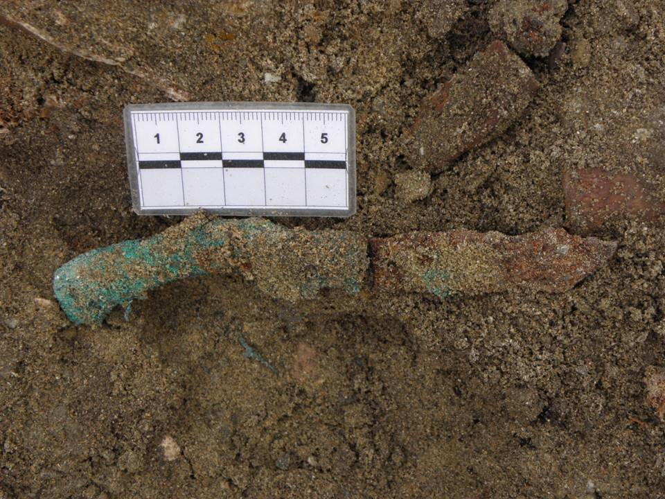 2. gizabanakoa antzeko adina zuen gizonezko bat zen. Labana bat, metalezko gerriko-belarri bat, nakarrezko hiru botoi eta kautxuzko zola bat aurkitu ziren bere zitzaizkion.
