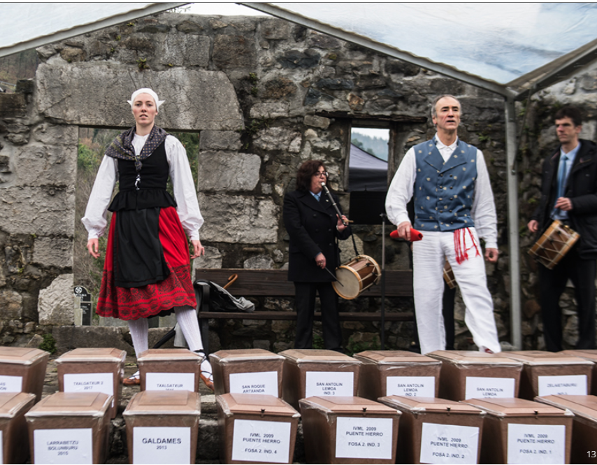 Gorpuzkiak Elgoibarko Duintasunaren Kolunbarioan ehortzi ziren, 2018ko otsailaren 9an, Gogora Memoriaren, Bizikidetzaren eta Giza Eskubideen Institutuak antolatutako ekitaldian.