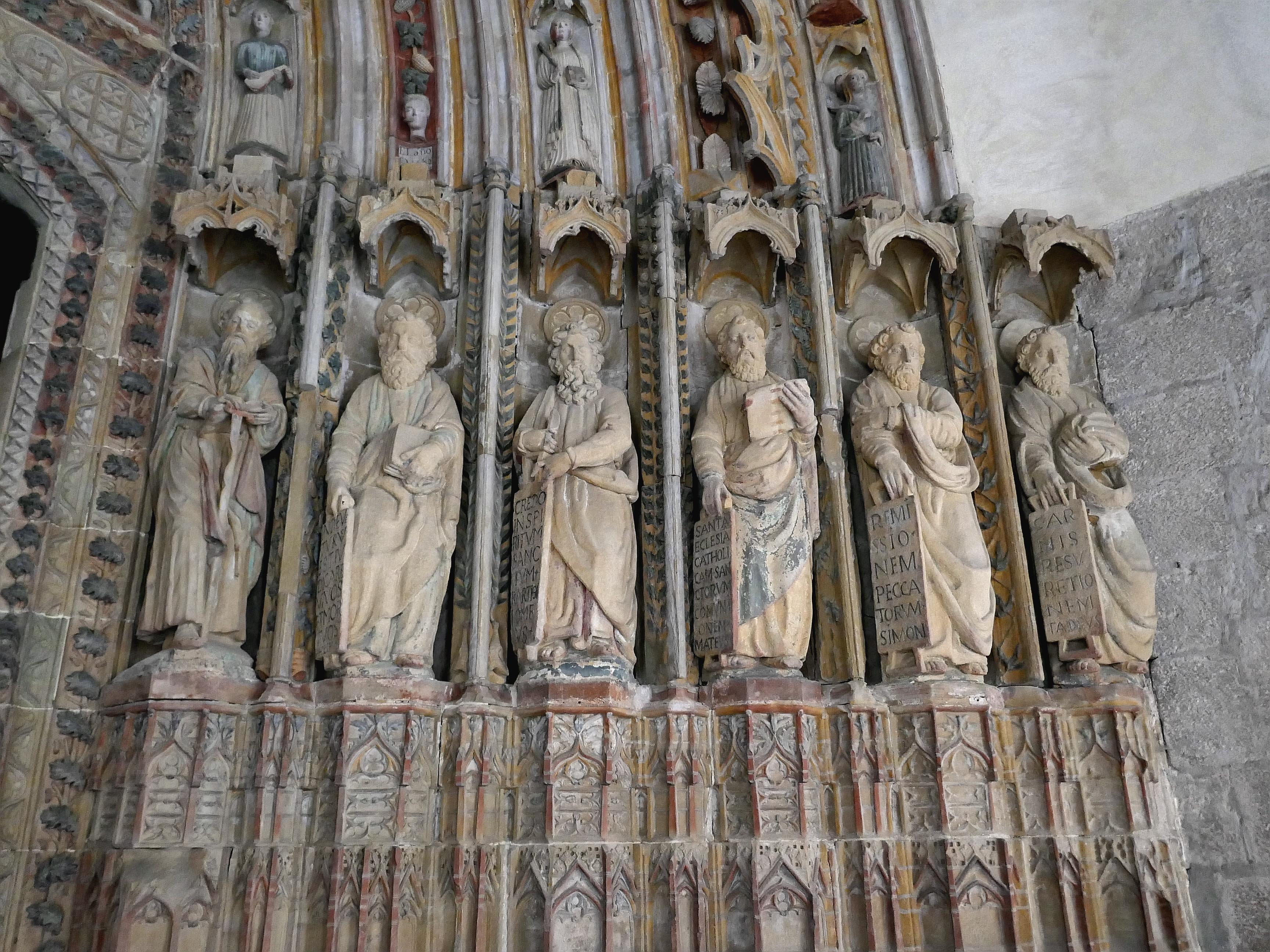 La iglesia parroquial de Santa María constituye uno de los mejores edificios gótico-renancentistas de la arquitectura religiosa vasca. Las obras de construcción de la actual iglesia arrancaron en el siglo XV, sobre los cimientos del anterior templo del siglo XIV. En 1575 se iniciaron las obras de ampliación de la iglesia, dentro del estilo de iglesia columnaria típica del renacimiento vasco. De la primitiva construcción gótica se conserva la portada, las capillas laterales, el claustro y un fragmento reducido del triforio. La gran portada gótica fue construida en el siglo XV y policromada en el 1682. Su programa iconográfico consiste en un friso de los 12 apóstoles que sustenta una arquivolta decorada con figuras de ángeles, vírgenes y martires. En el tímpano se refresenta en tres franjas la vida de la Virgen. La puerta se divide por parteluz con la imagen de cristo victorioso. El claustro, cuya construcción arrancó en 1500, consta de cuatro corredores cubiertos con bóvedas ojivales, abierto mediante 16 vanos apuntados con claraboyas de tracerías góticas y renacentistas. En su interior destaca seis preciosas capillas góticas. En el lado de la epístola se sitúan la capilla de San Pedro (perteneciente a los Agirre), la de San Antón con un tríptico flamenco del siglo XVI (de los Sasiola) y la del Santo Sepulcro, antigua sacristía. En el lado del evangelio destacan la de Santo Domingo (del comendador Juan de Andonaegui), la de San Juan (de los Zubelzu) y la de Nuestra Señora de la Misericordia (de los Irarrazabal). Destacan también su sacristía y el retablo mayor, dedicado a Santa María, así como las dos laterales son barrocas, obra de la segunda mitad del siglo XVII.