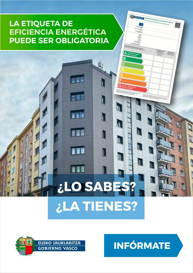 La Etiqueta de Eficiencia Energética es el distintivo que señala el nivel de calificación de eficiencia energética obtenida por el edificio o parte del mismo, y que acredita que el mismo dispone de un Certificado de Eficiencia Energética valido inscrito en el Registro de Certificados de Eficiencia Energética del País Vasco.