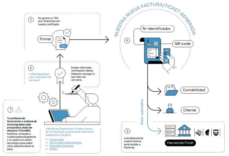 Básicamente lo que TicketBAI hace es un encadenamiento de las facturas, que asimismo se firman electrónicamente, lo que impide su manipulación o borrado.