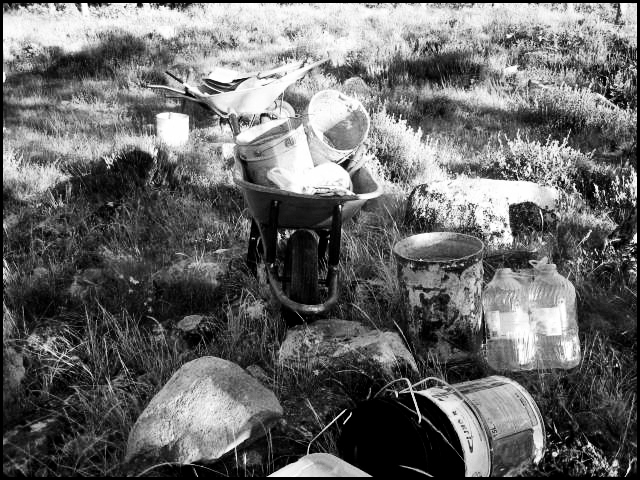 Día de trabajo. Le pongo este título porque los días de trabajo empezaban cojiendo las carretillas, con las garrafas de agua, los cubos... etc.