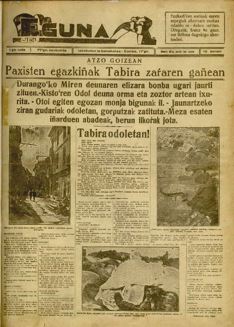Eusko Jaurlaritzaren ekimenez, 1937an Eguna egunkaria sortu zen. Euskarazko lehenengo egunkaria izan bazen ere, proiektuak merezi zuen garrantzia itzali zion gerrak. Esaterako, Nafarroa eta Araba frankisten esku geratzean euskarazko prentsa desagertu zen, gerraren lehen egunetik bertatik.