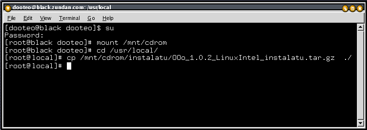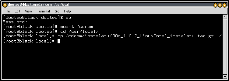 - Orain OpenOffice.org programa kopiatu beharreko direktorioan kokatu. Ohitura politta izaten da /usr/local direktoriopean kopiatzea.
