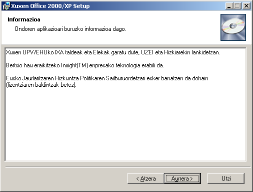 - Urrats honetan, Xuxen Office 2000/XP programaren datuak kopiatuko dira gure ordenagailuan