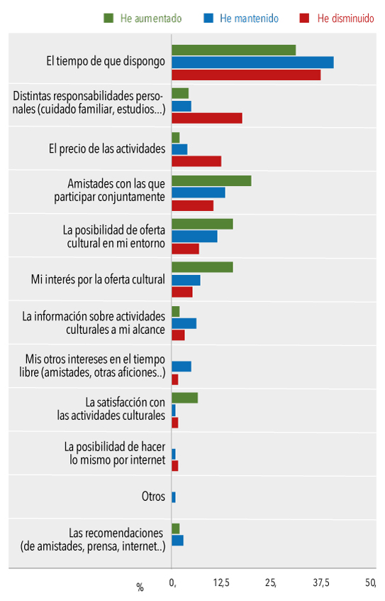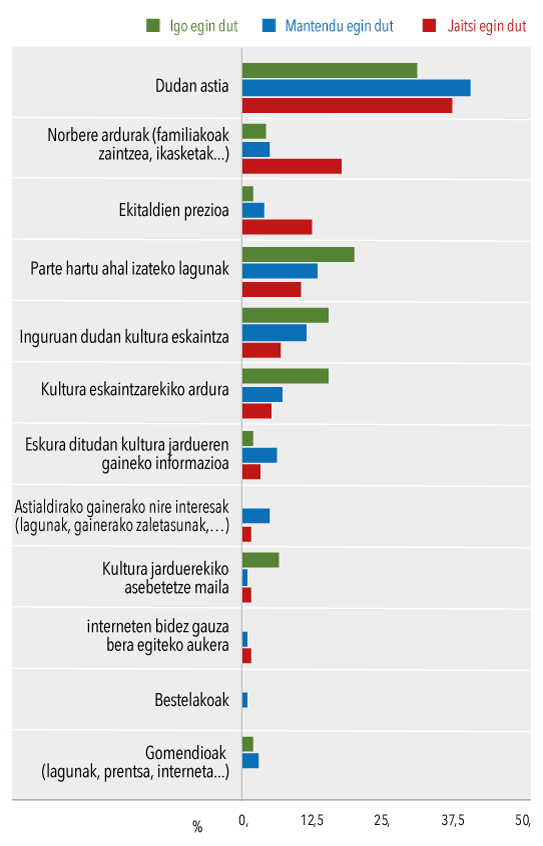 | 4. Condicionantes de la evolución del nivel de participación cultural | 4. Kultura parte-hartze mailaren bilakaeraren baldintzatzaileak | |||||||||