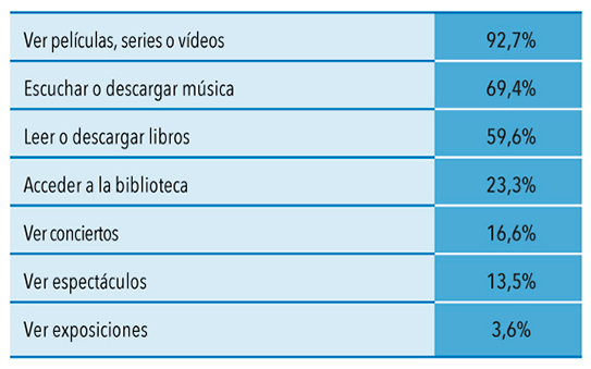 A modo de caracterización, las actividades de participación receptiva más habituales en los últimos 6 meses son las siguientes:
