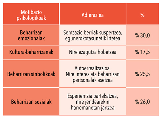 Ondorengo taulak dioen bezala, ez da motibazio bakar nabarmentzen, baina diferentziak ikusten dira: