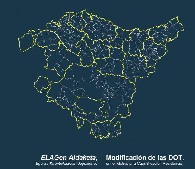 Directrices de Ordenación Territorial (DOT) Directrices de Ordenación Territorial de la Comunidad Autonoma del Pais Vasco -DOT (2019) Decreto 128/2019, de 30 de julio, de aprobación definitiva Libro. Documentación escrita completa (PDF, 29 MB) Indice (PDF, 78 KB) Memoria (PDF, 26 MB) Normas de Aplicación (PDF, 795 KB) Mapa síntesis (PDF, 3 MB) Documentación en inglés Estudio Ambiental Estratégico (PDF, 7 MB) Proceso de Revisión de las DOT (2015-2019) Modificación de las DOT en lo relativo a la Cuantificación Residencial (2016) DECRETO 4/2016, de 19 de enero, de modificación del Decreto por el que se aprueban definitivamente las Directrices de Ordenación Territorial de la Comunidad Autónoma del País Vasco, en lo relativo a la cuantificación residencial. Modificación de las DOT como consecuencia de su Reestudio. Euskal Hiria NET (2012) Acuerdo de Consejo de Gobierno de 4 de marzo de 2014 por el que se decide continuar la modificación de las DOT en lo referente a la cuantificación residencial (PDF, 1 MB) Documentos de Aprobación Inicial y Reestudio. DOT, Directrices de Ordenación Territorial de la Comunidad Autónoma del País Vasco (1997) Directrices de Ordenación Territorial de la Comunidad Autónoma del País Vasco (1997)