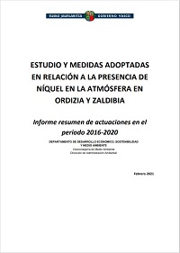 ESTUDIO Y MEDIDAS ADOPTADAS EN RELACIÓN A LA PRESENCIA DE NÍQUEL EN LA ATMÓSFERA EN ORDIZIA Y ZALDIBIA Lista de documentos ESTUDIO Y MEDIDAS ADOPTADAS EN RELACIÓN A LA PRESENCIA DE NÍQUEL EN LA ATMÓSFERA EN ORDIZIA Y ZALDIBIA (PDF, 4.45 MB) Informes del laboratorio (PDF, 11.13 MB) Detalles