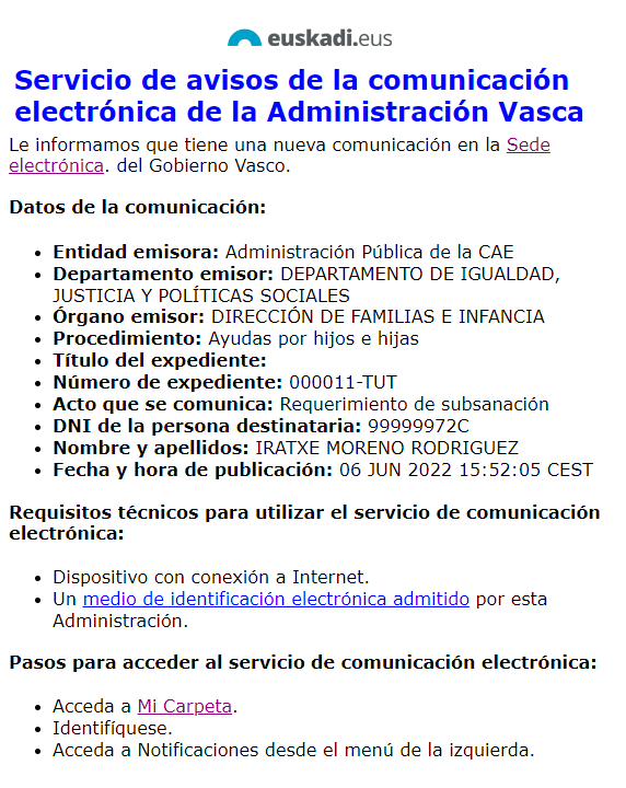 IMPORTANTE: Si tiene problemas al acceder, puede contactar a través del siguiente teléfono: 945 01 68 38 (Centro de atención a personas usuarias de los servicios electrónicos)