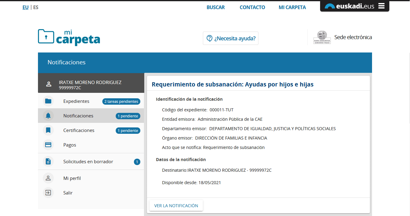 Para acceder a la notificación seleccionamos el botón “Ver la notificación”.
