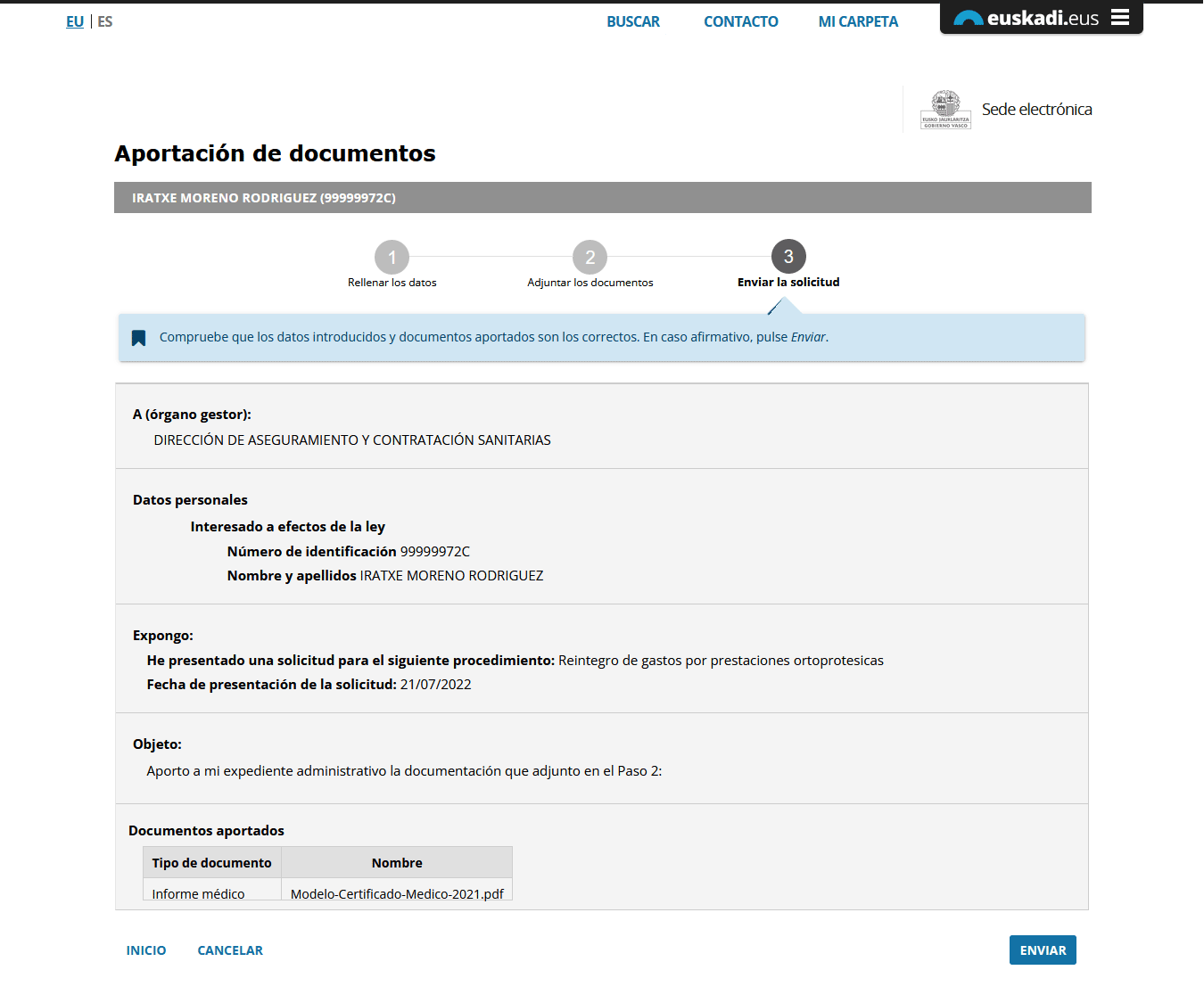 Para finalizar, seleccionamos el botón “ENVIAR”.