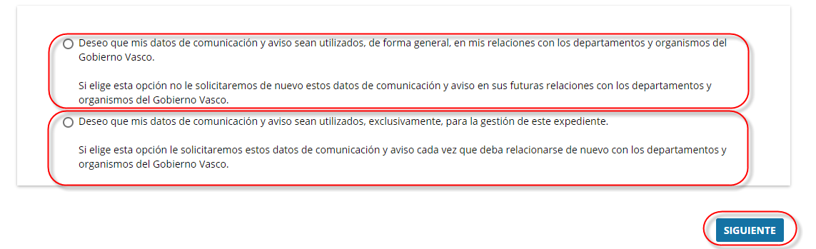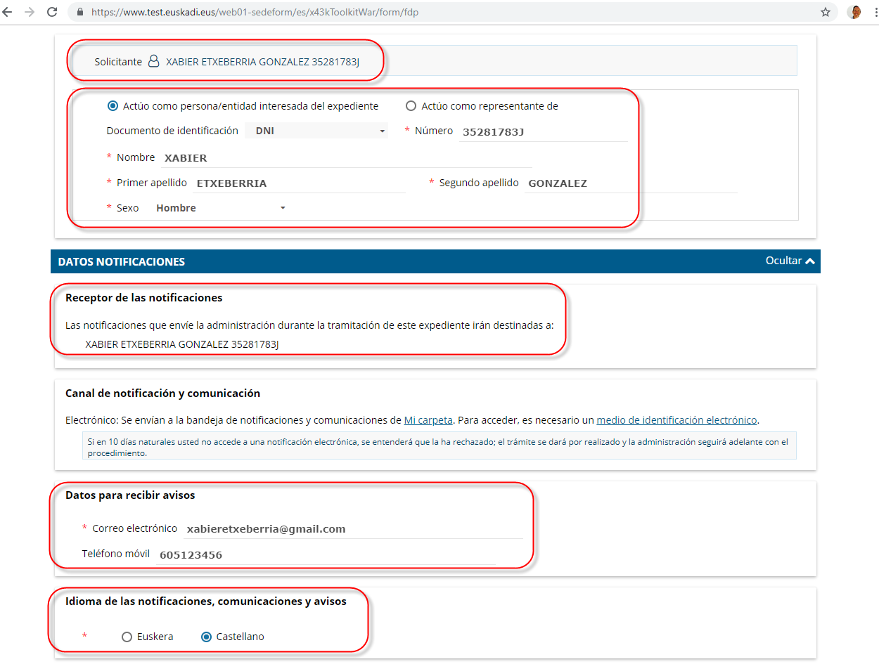 - El idioma de las notificaciones, comunicaciones y avisos: euskera o castellano.