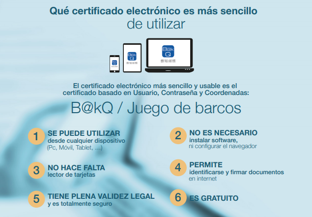 Estos certificados electrónicos basados en "Usuario, Contraseña y Coordenadas: BakQ/Juego de barcos“, se emiten en: