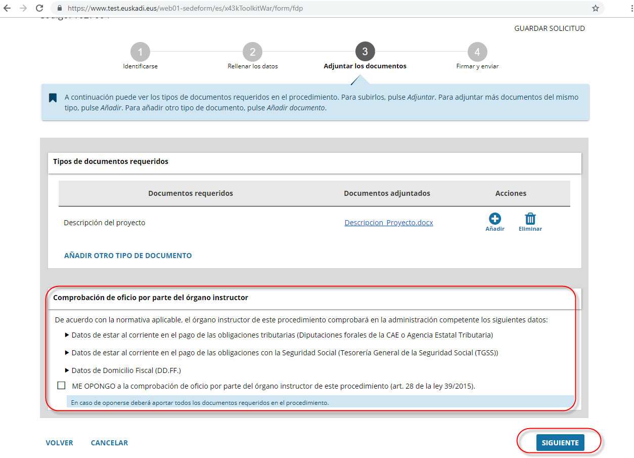 NOTA: Dependiendo de los datos incorporados en el paso anterior (Paso 2. Rellenar los datos), nos requerirán unos documentos u otros.