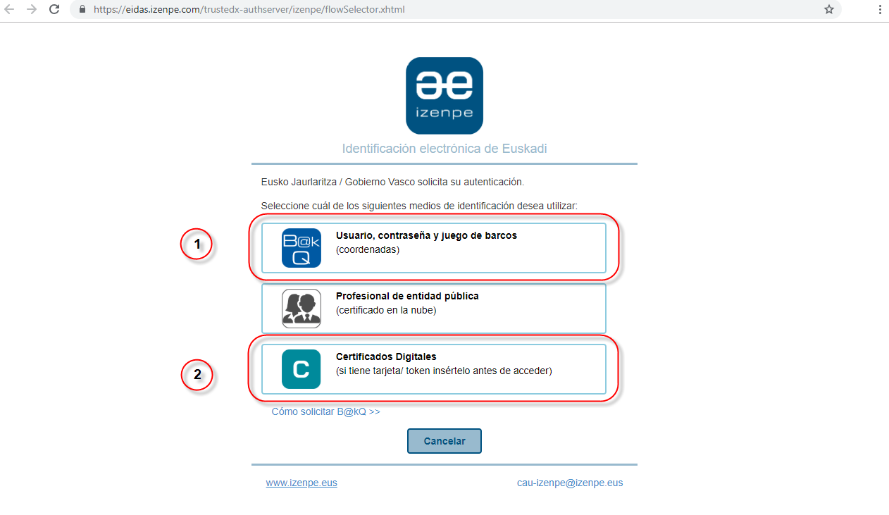 NOTA 2: Si se opta por identificarse a través de la segunda opción, Certificados Digitales, asegúrese que su dispositivo electrónico dispone de la última versión de la herramienta de firma de Izenpe, Id@zkiDesktop