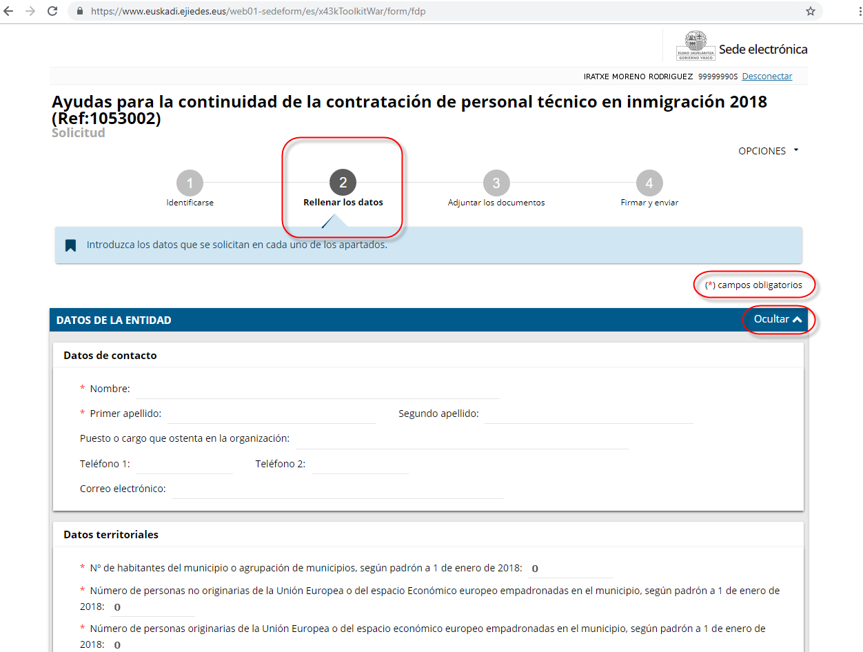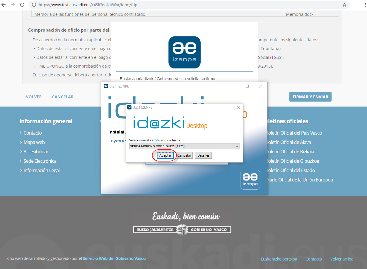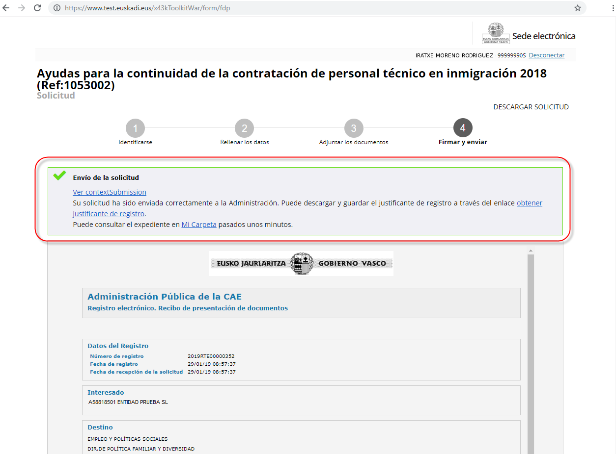 Como hemos comentado anteriormente, en este ejemplo, el solicitante ha accedido con un certificado de cuidadano.