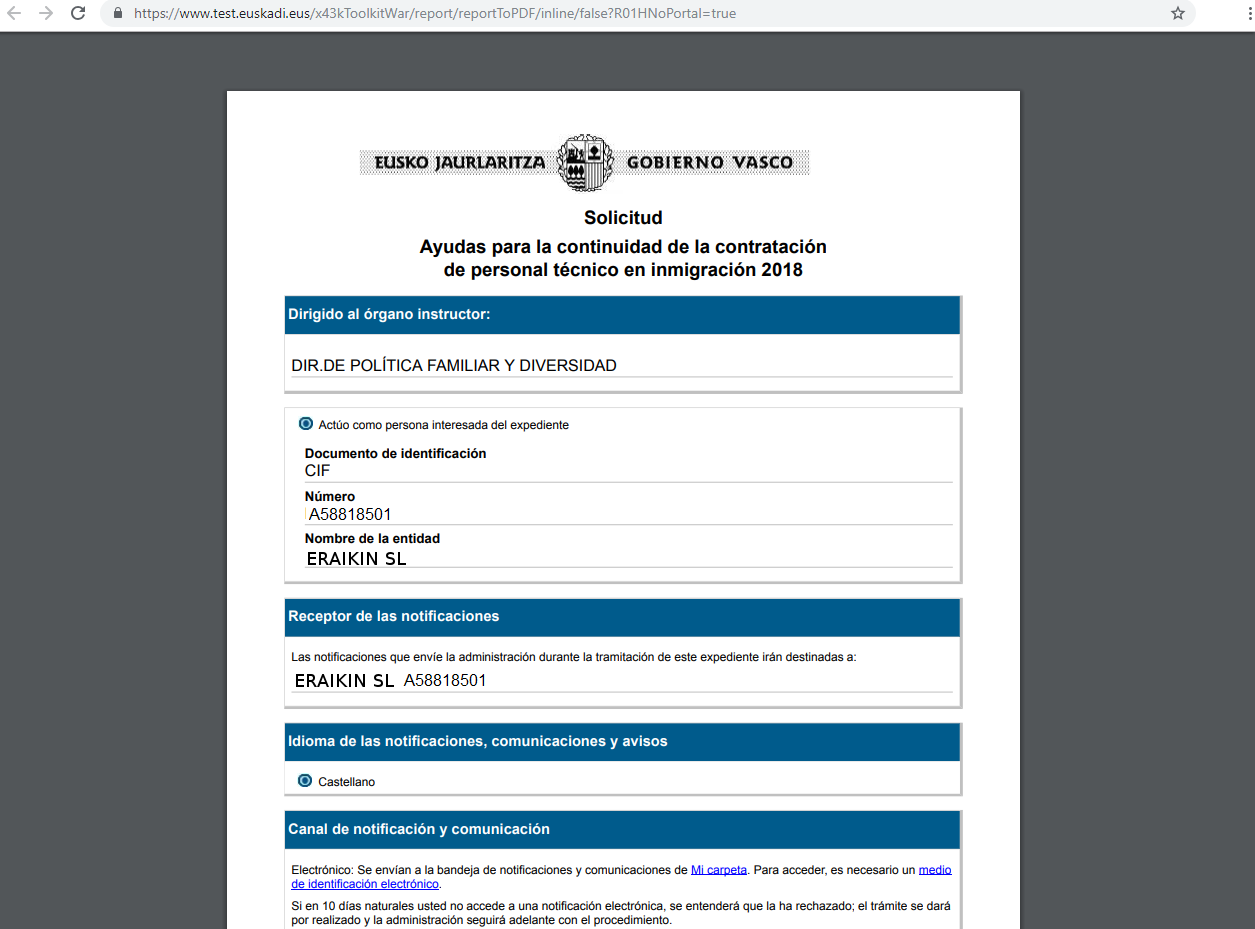 NOTA: Para la confección de la presente Guía, a modo de ejemplo, vamos la tramitar la solicitud de una ayuda, Ayuda para la continuidad de la contratación de personal técnico en inmigración. En concreto, estas ayudas van dirigidas a empresas o entidades de la Comunidad Autónoma del País Vasco.