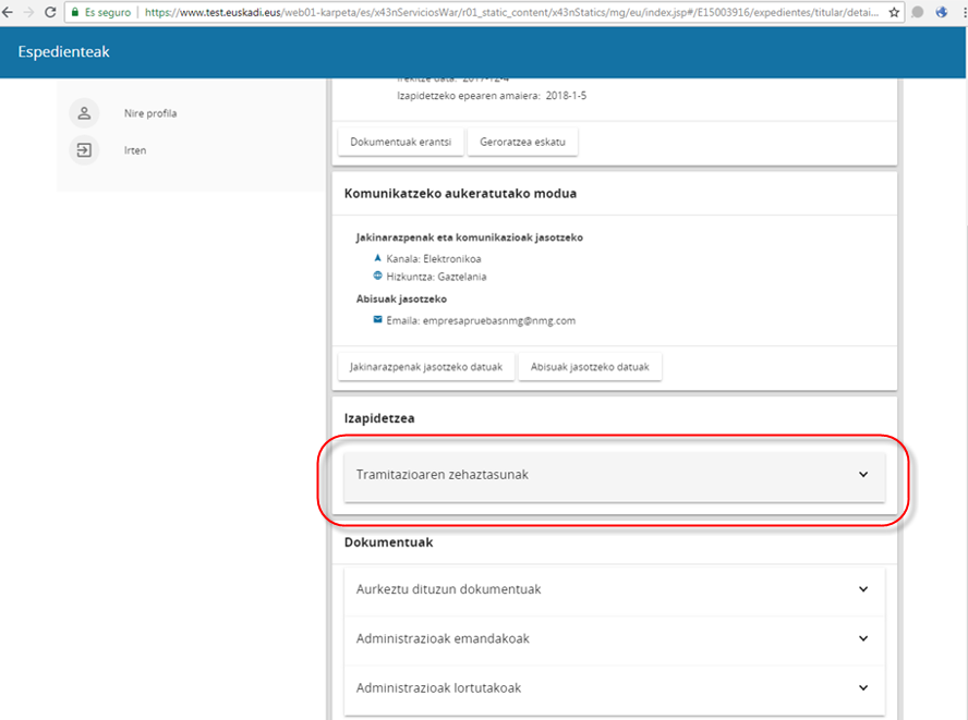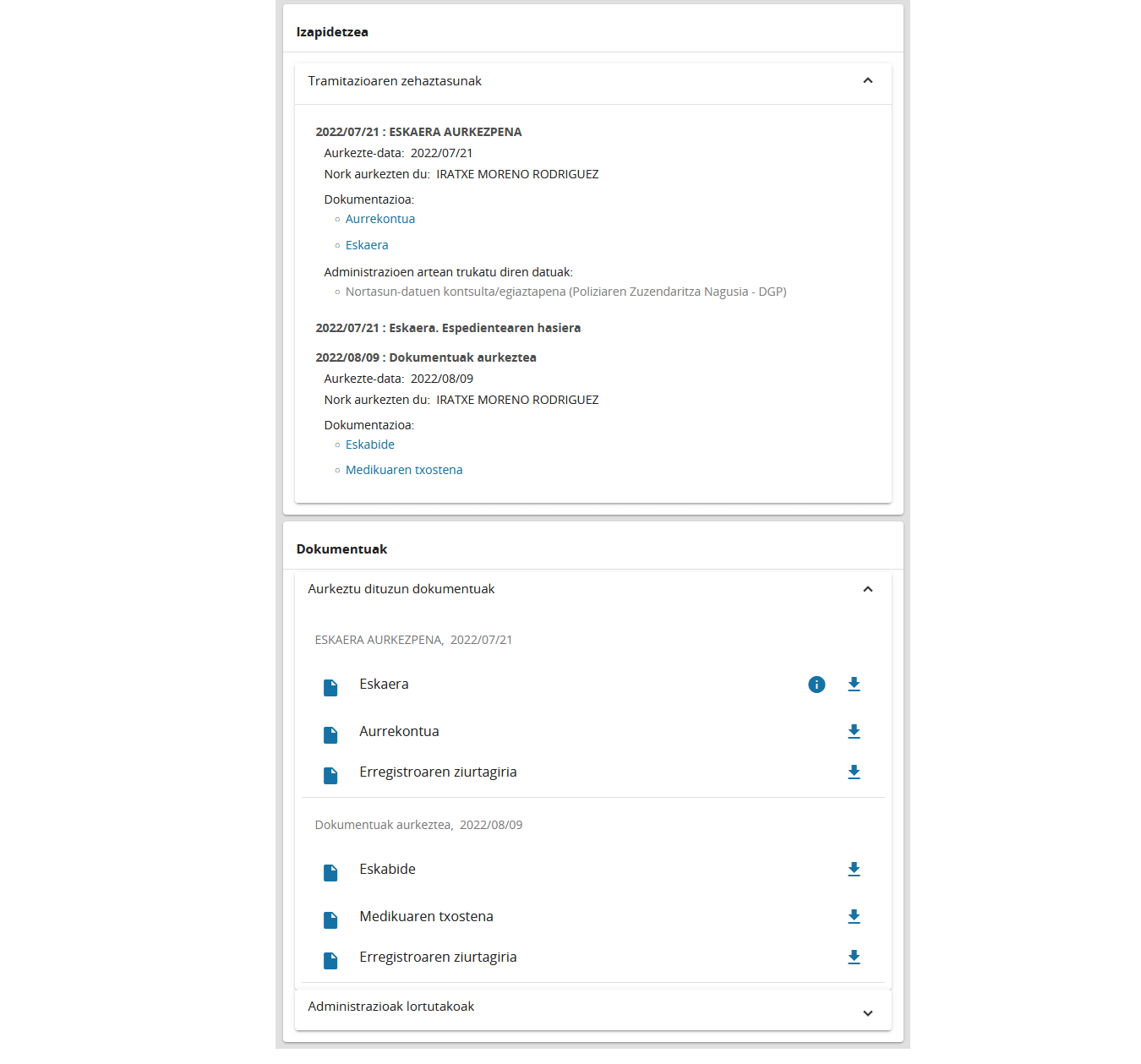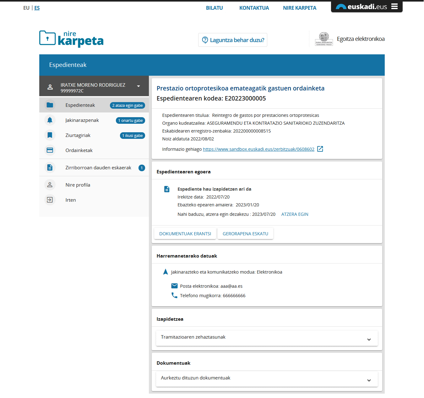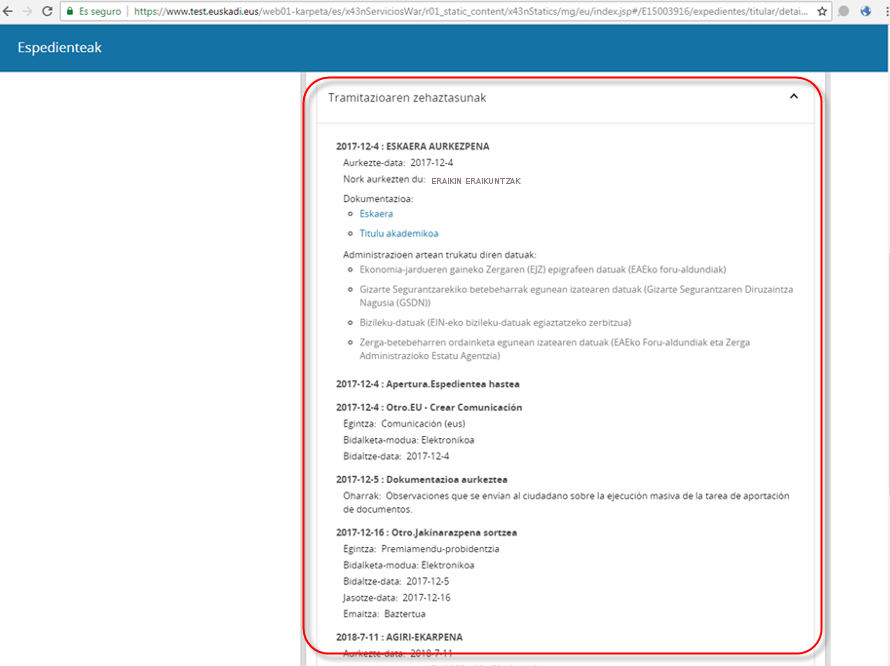 Orain, Nire karpetan, dagokion espedienteak aurkeztutako azken dokumentuak erakusten ditu. "Tramitazioaren zehaztasunak" eta "Dokumentuak" ataletik ikusgai egongo dira.