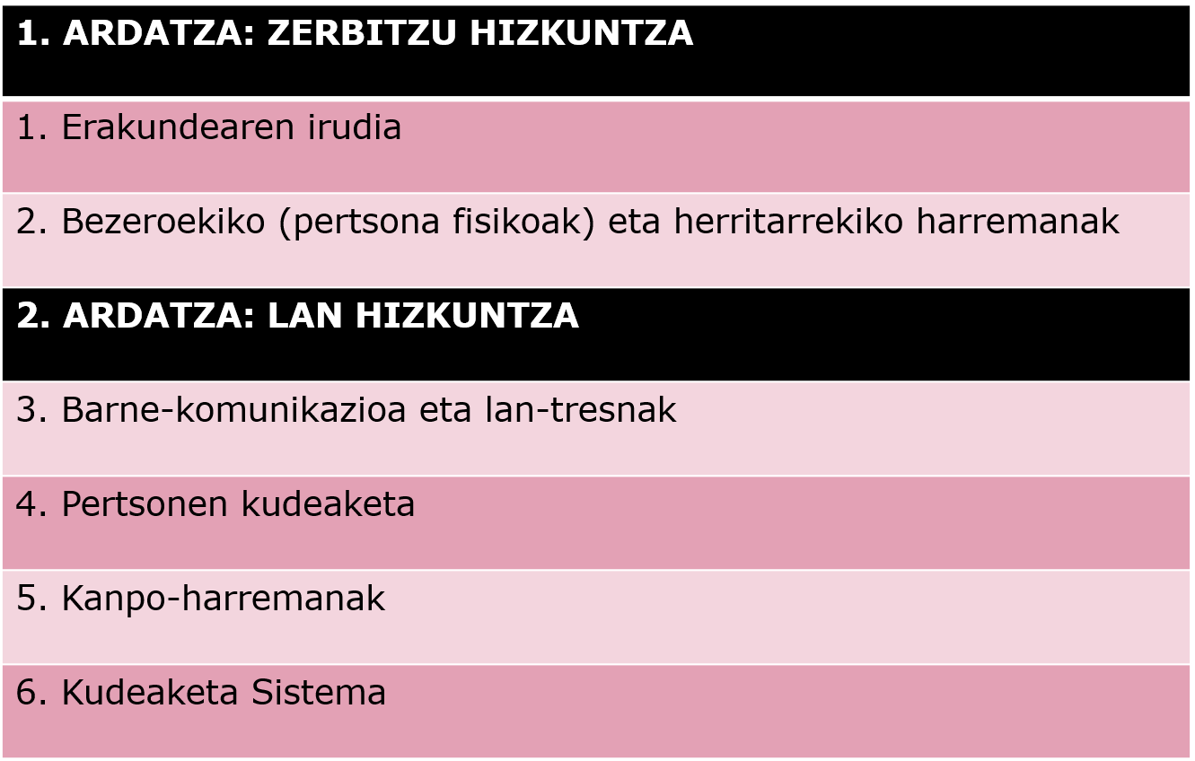 Zerbitzu-hizkuntzari dagozkion ondorengo bi elementuetako baldintzak bete beharko ditu: