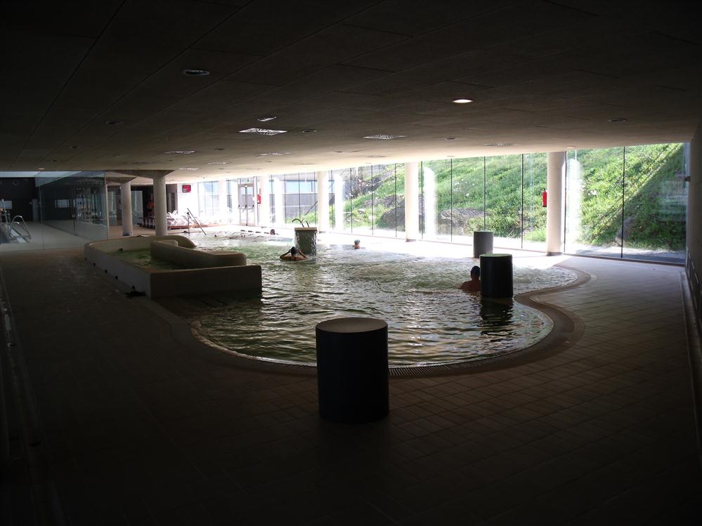 - Hay 68 taquillas en los pasillos comunitarios de los vestuarios de piscina (Además de los existentes en los vestuarios). Hay 74 taquillas más en el espacio de las dos piscinas, junto a los vasos y fuera de los vestuarios. Son comunitarios. Hay un tercer vaso de hidromasaje separado por mampáras traslúcidas fijas. El vaso es destacable en sus dimensiones: 265 m3, profundidad 1,00-1,45 m. Forma irregular de unos 200 m2. Junto al de hidromasaje, un cuarto vaso de agua fría, solo de 4 m3. Profundidad 0-1,50 m.